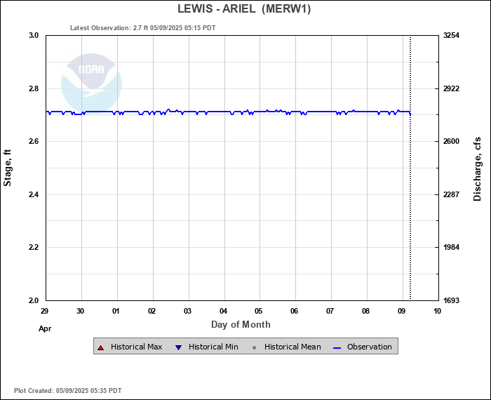 Daily Historical Statistics for December 30, 2025 Mean Stage: 5.32 ft Mean Flow: 7760 cfs Max Stage: 17.61 ft Max Flow: 43300 cfs (1938) Min Stage:  1.34 ft Min Flow: 823 cfs (1953)