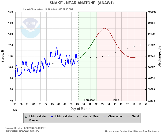 Daily Historical Statistics for January 02, 2026 Mean Stage: 5.83 ft Mean Flow: 25500 cfs Max Stage: 22.19 ft Max Flow: 173000 cfs (1997) Min Stage:  3.29 ft Min Flow: 13100 cfs (2004)