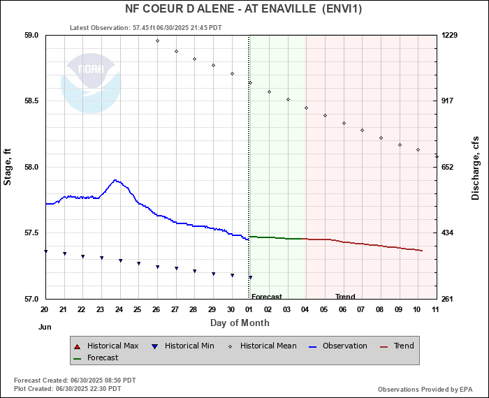 Daily Historical Statistics for December 26, 2025 Mean Stage: 59.27 ft Mean Flow: 1420 cfs Max Stage: 70.53 ft Max Flow: 21300 cfs (1981) Min Stage:  56.43 ft Min Flow: 119 cfs (1953)