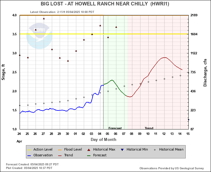 Daily Historical Statistics for February 01, 2026 Mean Stage: 0.93 ft Mean Flow: 77 cfs Max Stage: 1.50 ft Max Flow: 230 cfs (1984) Min Stage:  0.69 ft Min Flow: 41 cfs (1991)
