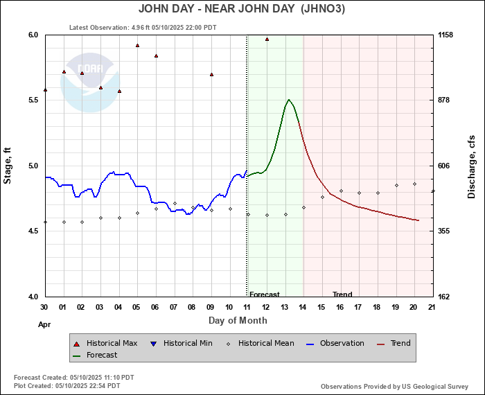 Record Stage: 10.8 ft Record Flow: 5830 cfs Date of Record: June 9, 1969