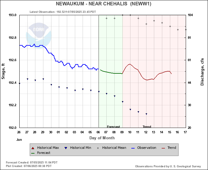 Daily Historical Statistics for January 31, 2026 Mean Stage: 196.02 ft Mean Flow: 1080 cfs Max Stage: 204.01 ft Max Flow: 6490 cfs (2003) Min Stage:  193.23 ft Min Flow: 140 cfs (1977)