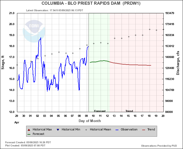 Daily Historical Statistics for February 02, 2026 Mean Stage: 14.46 ft Mean Flow: 110000 cfs Max Stage: 22.33 ft Max Flow: 213000 cfs (1996) Min Stage:  7.43 ft Min Flow: 46700 cfs (1964)