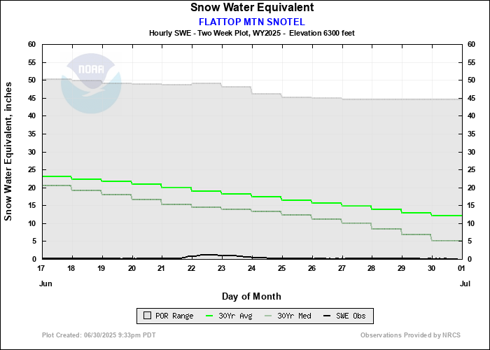 Accumulated Precipitation, Snow Depth, Snow Density and Temperature graphs are no longer displayed by the NWRFC starting June 2025. Links to the respective data collection agencies where similar information can be obtained are found below.