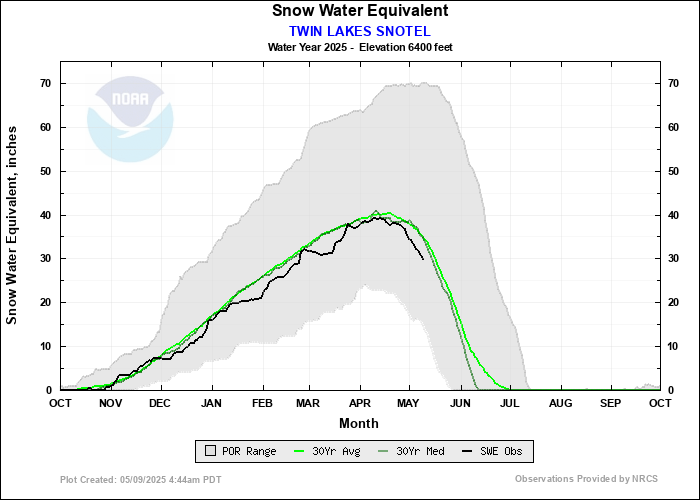 Accumulated Precipitation, Snow Depth, Snow Density and Temperature graphs are no longer displayed by the NWRFC starting June 2025. Links to the respective data collection agencies where similar information can be obtained are found below.