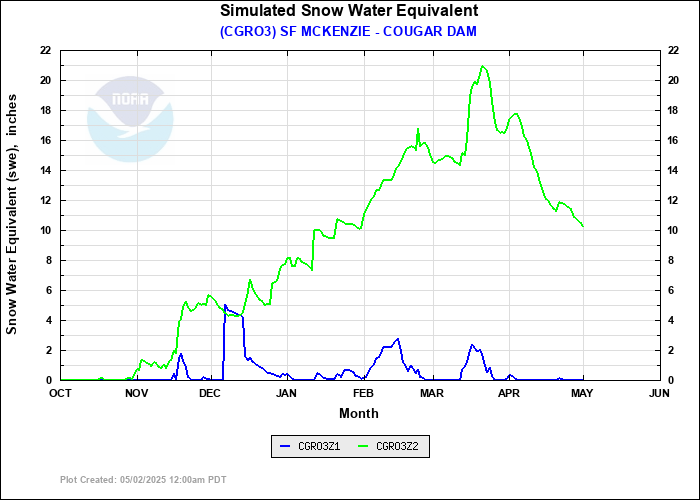 | MCKENZIE SNOTEL | 12 | 5000 | 02-19 | 9.4 | 31 % | 30.0 | 204 | 5 % | 100 % | 24 % | |