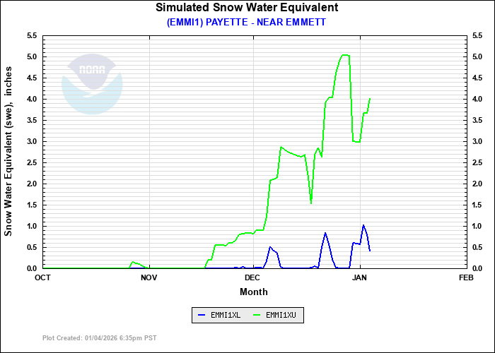 | MORES CREEK SUMMIT SNOTEL | 17 | 6100 | 01-03 | 5.1 | 40 % | 12.7 | 14 | 36 % | 100 % | 17 % | |