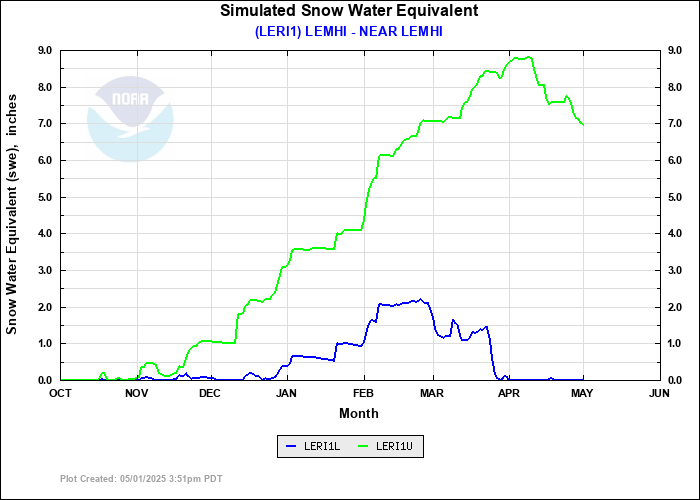 | LEMHI RIDGE SNOTEL | 5 | 8100 | 01-10 | 4.8 | 89 % | 5.4 | 20 | 24 % | 100 % | 42 % | |
